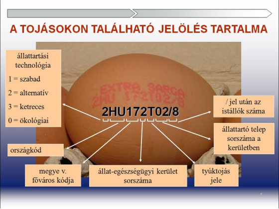 Mindenekelőtt a tojásra bélyegzett számsorban keresse a betűket, ha HU-t lát, az magyar, az NL holland, a DE német, a PL lengyel stb. A tojás doboza néha megtévesztő lehet, mert magyar feliratozása (ez egyébként kötelező előírás) ellenére a benne lévő tojás lehet külföldi. Sok áruház saját nevét iratja a dobozra, ezt megteheti, de a tojás származását a rábélyegzett számsorból tudhatjuk meg. A tojás dobozán a csomagolóhely neve és száma kötelezően szerepel, de ez sem mindig azonos a tojás termelőjével. Mindig a dobozban lévő tojást figyelje, mert ahogyan nem a ruha teszi az embert, úgy nem a csomagolás azonosítja a tojást.